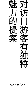 为能够充分感受日本的魅力,安排并企划能够感受四季变换的行程。对目前的东京/京都/大阪之外的商品的开发及介绍。通过对经营/安排/导游的一条龙管理,实现畅通迅速的招待行程。